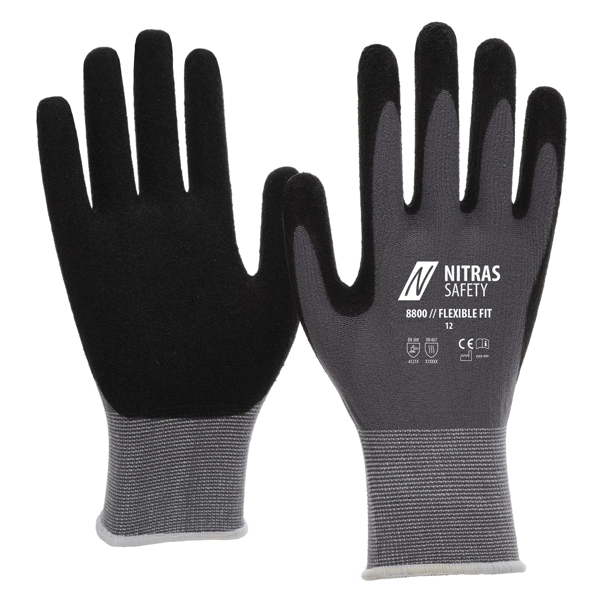 De NITRAS FLEXIBLE FIT montagehandschoenen zijn de perfecte keuze voor professionals die op zoek zijn naar betrouwbare bescherming en maximale mobiliteit. Deze grijze handschoenen met zwarte nitrilcoating (kleurcode: 1210) zijn gedeeltelijk gecoat op de handpalm en vingertoppen en bieden een gebreide manchet voor optimale grip. Ze garanderen een perfect draagcomfort en beweeglijkheid, zijn geschikt voor contact met voedsel en bieden bescherming tegen contacthitte tot 100°C gedurende 15 seconden. De handschoenen zijn van premium kwaliteit, voldoen aan de OEKO-TEX STANDARD 100® en zijn bijzonder gevoelig, ideaal voor het werken met kleine onderdelen. Ze worden gekenmerkt door hun slipweerstand, perfecte grip en hoge slijtvastheid (tot 20.000 schuurcycli) en behoren tot PBM-risicocategorie II.