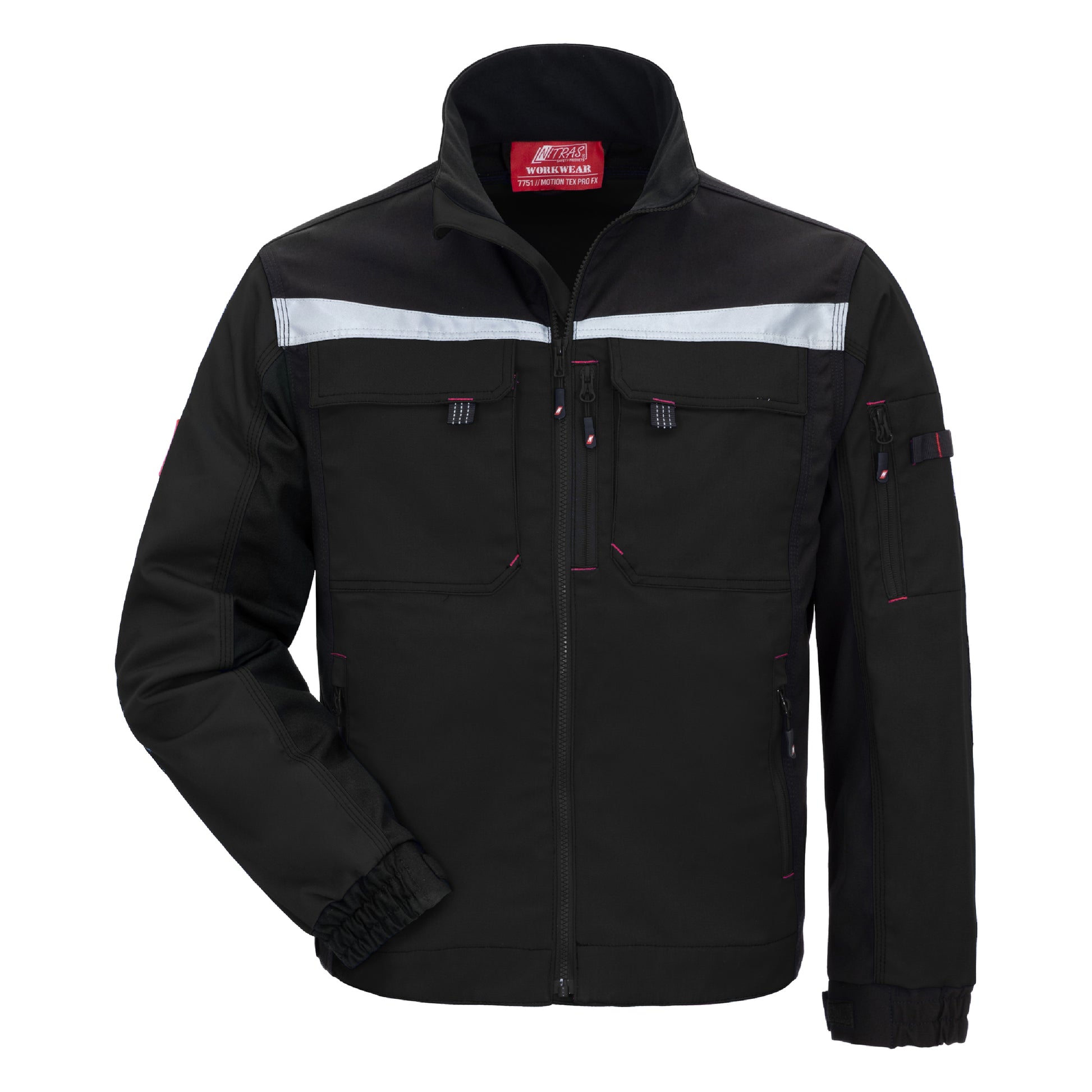 De NITRAS MOTION TEX PRO FX werkjas in klassiek zwart (kleurcode: 1000) overtuigt door zijn ademende materiaal met een gewicht van 280 g/m² en bijzonder hoog draagcomfort dankzij 2-way stretch. Het verlengde rugpand en de aangenaam zachte opstaande kraag van fleece zorgen voor extra bescherming en comfort. Robuuste drievoudige naden, versterkte zakken, mouwen en schouders en CORDURA®-versterkingen op de ellebogen en rug zorgen voor een lange levensduur. Een doorlopende YKK-ritssluiting met kinbescherming en windstopper aan de binnenkant beschermt betrouwbaar tegen wind. 3M Scotchlite™ reflecterend materiaal zorgt voor betere zichtbaarheid bij weinig licht. De werkjas is veelzijdig inzetbaar met twee borstzakken met klep, zijzakken, een tabletzak, een binnenzak en een napoleonzak en een mouwzak met pennenlussen. Het voldoet aan de OEKO-TEX STANDARD 100® en biedt premium kwaliteit in een comfortabele pasvorm.
